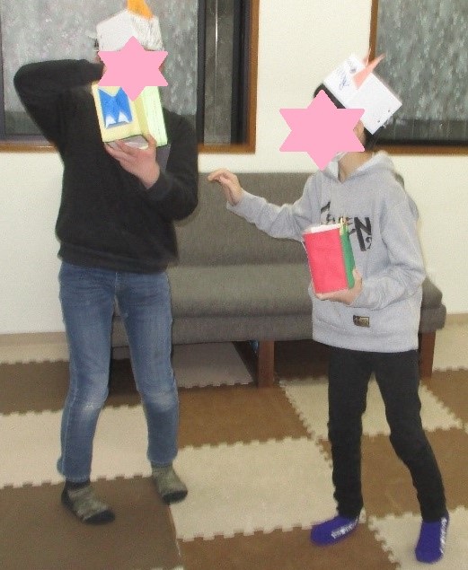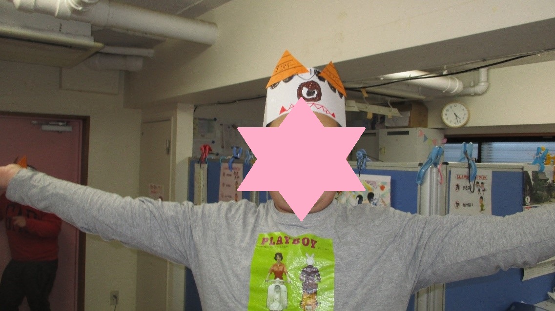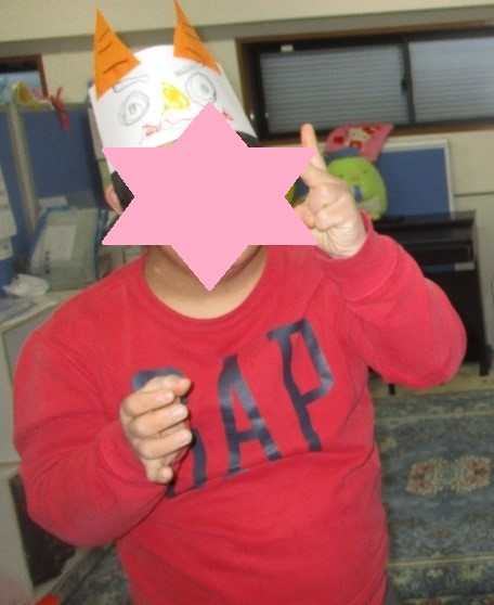 今年は鬼のお面と豆入れの2つを製作の時間に作りました☆