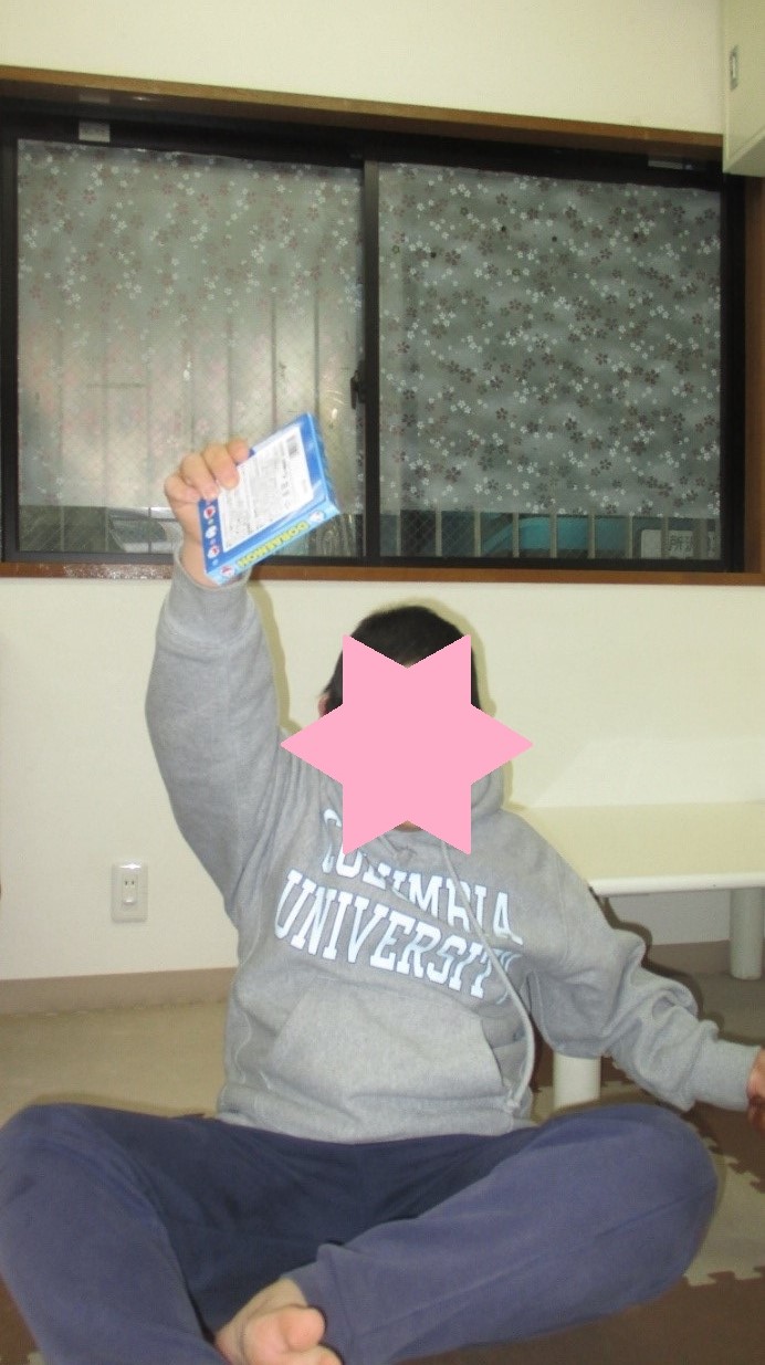 チョコを受け取るとバンザイポーズで喜んでくれました。