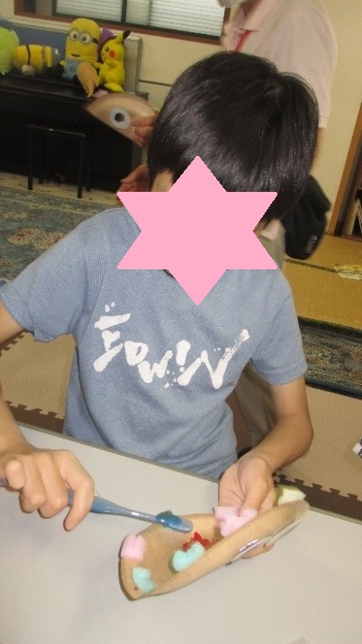 実際に歯ブラシを使用し練習しました。
