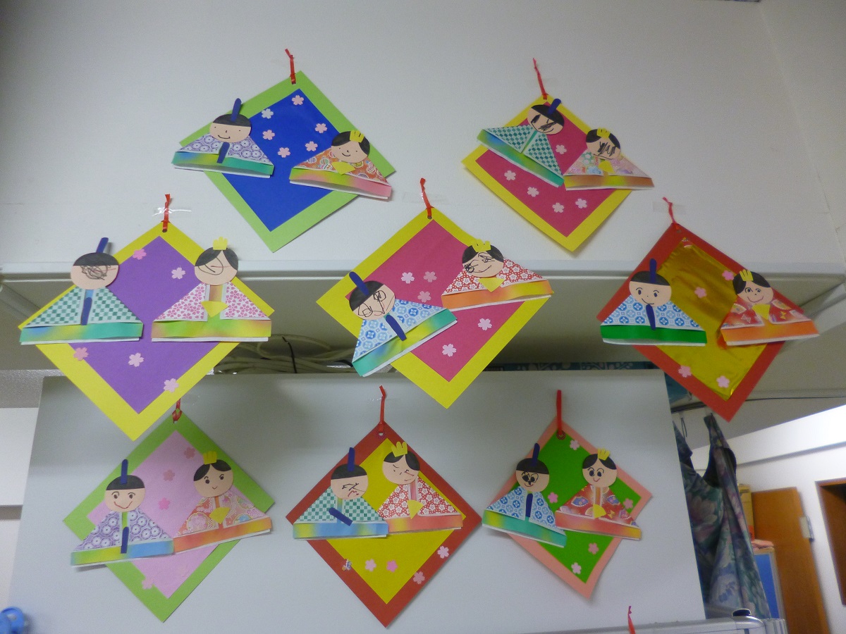 ひなまつり製作をしました。 あとはひなまつりパーティーを待つばかり。 どんなパーティになるのかなあ?? かわいい雛人形のできあがり~