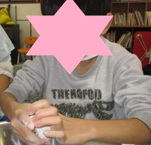 キャベツをちぎる係、ウインナーを切る係を決めて取り組みました。