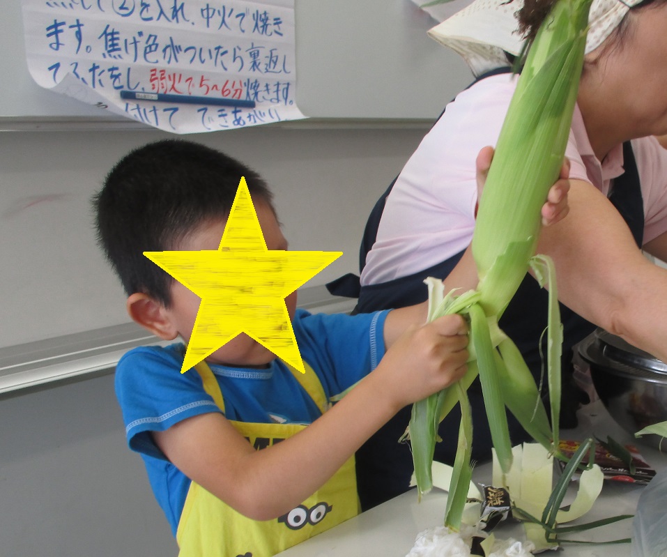 とうもろこしの皮むきにはみなさん苦戦したようすですが、協力してがんばりましたよemoji