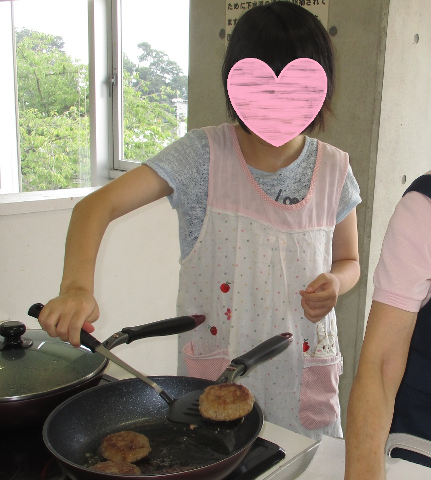 そして年長のお姉さんがハンバーグ焼きますemoji